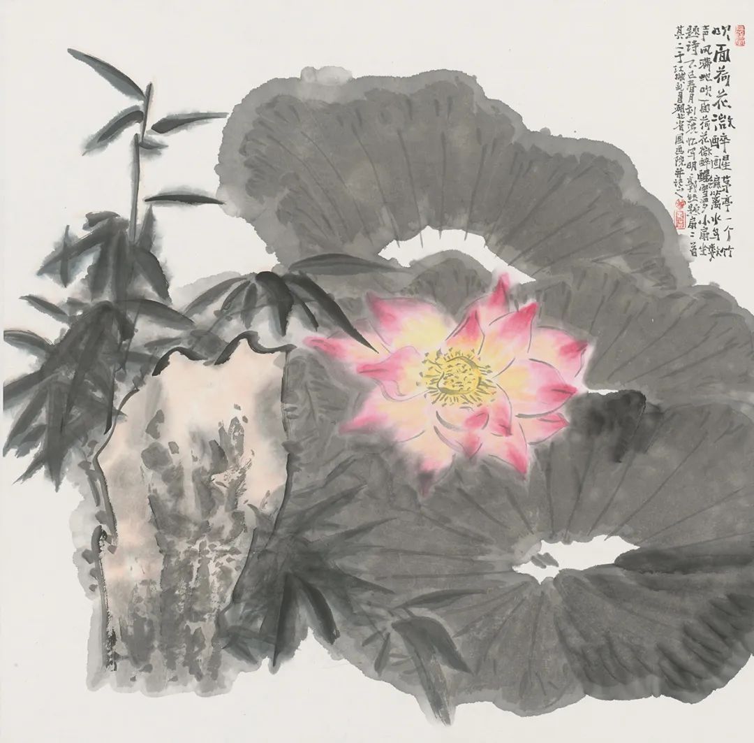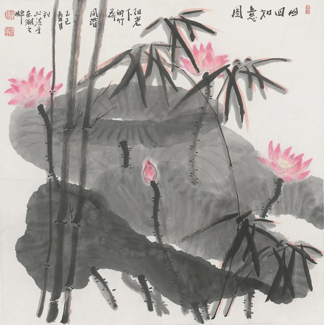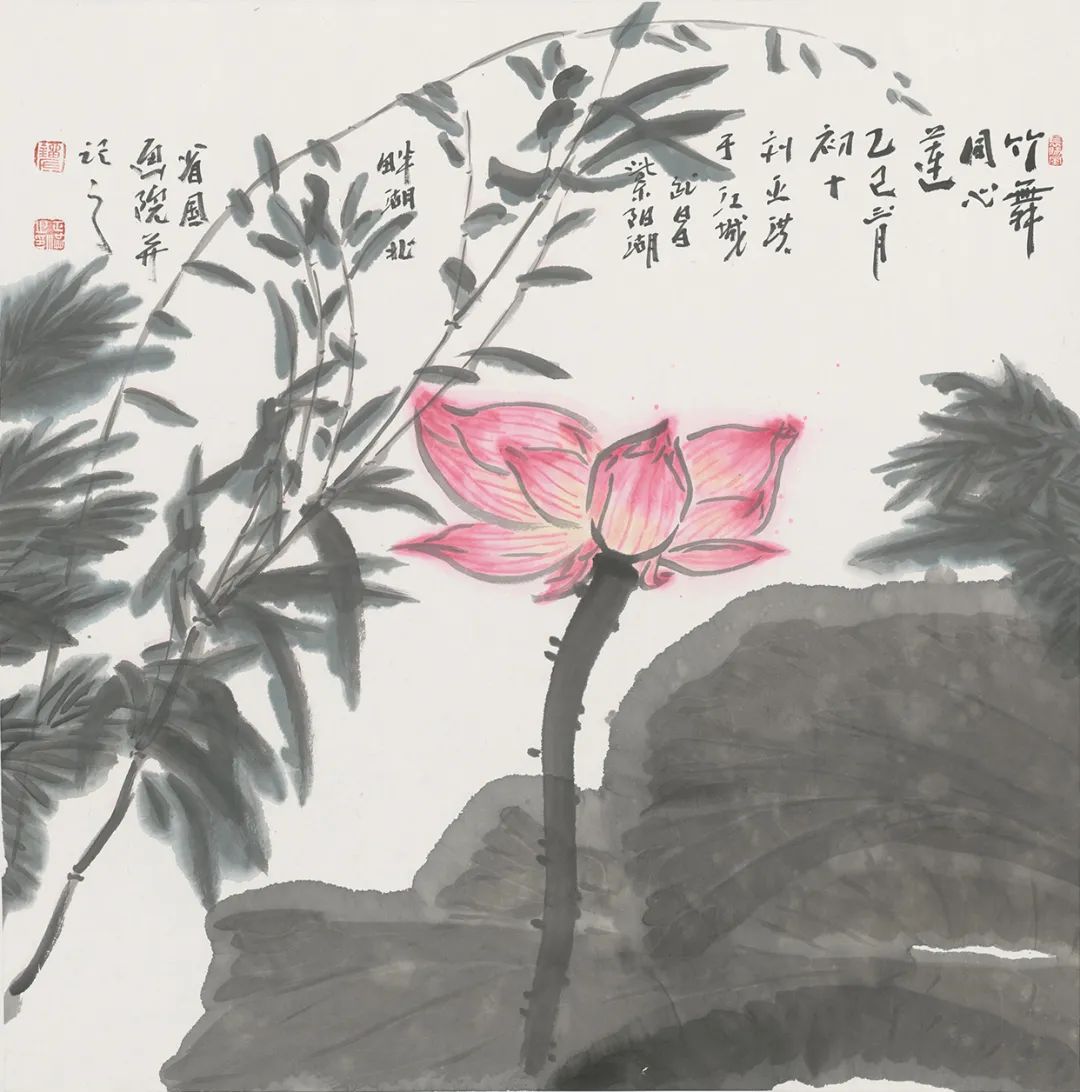 劉正洪 國畫 竹舞同心蓮 68cm×68cm 2025年