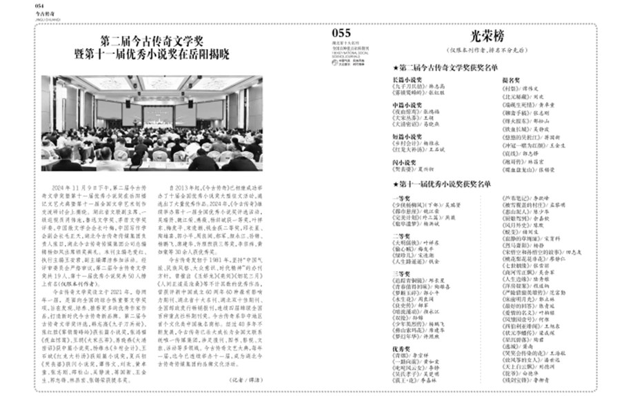 (3)主辦、聯(lián)合主辦了系列文學(xué)賽事:舉辦第二屆(2022-2024)今古傳奇文學(xué)獎頒獎典禮,征文評選活動歷時2年,獲獎作品共計(jì)19部;主辦了光芒少年文學(xué)獎評比、中華家風(fēng)中小學(xué)生征文;聯(lián)合主辦“昆山文化”征文及相關(guān)活動,加強(qiáng)刊物與地方文化的互動。與湖北省圖書館合作第21屆“童之趣”杯征文大賽,參與征文評審工作,并為優(yōu)秀作品提供刊發(fā)平臺。