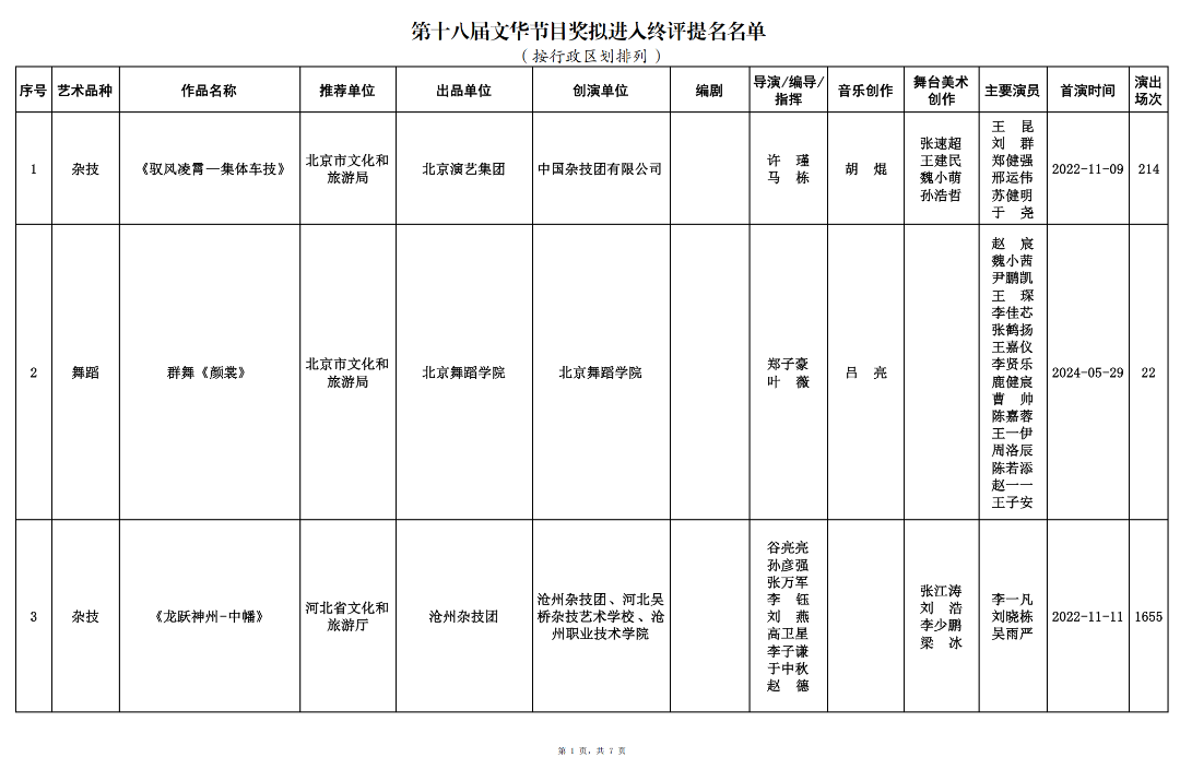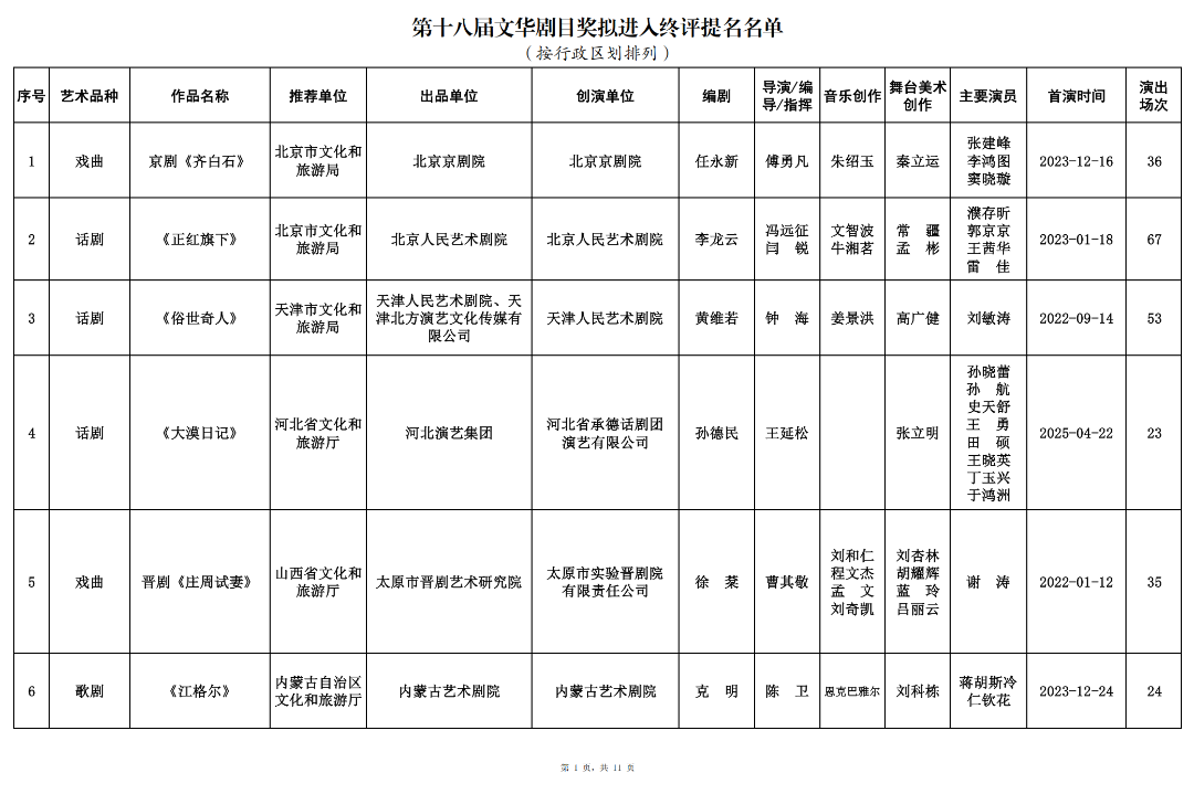 根據(jù)《文華獎(jiǎng)?wù)鲁獭贰兜谑藢梦娜A獎(jiǎng)評(píng)獎(jiǎng)辦法》有關(guān)規(guī)定,現(xiàn)將第十八屆文華劇目獎(jiǎng)、文華節(jié)目獎(jiǎng)擬進(jìn)入終評(píng)提名名單進(jìn)行公示。
