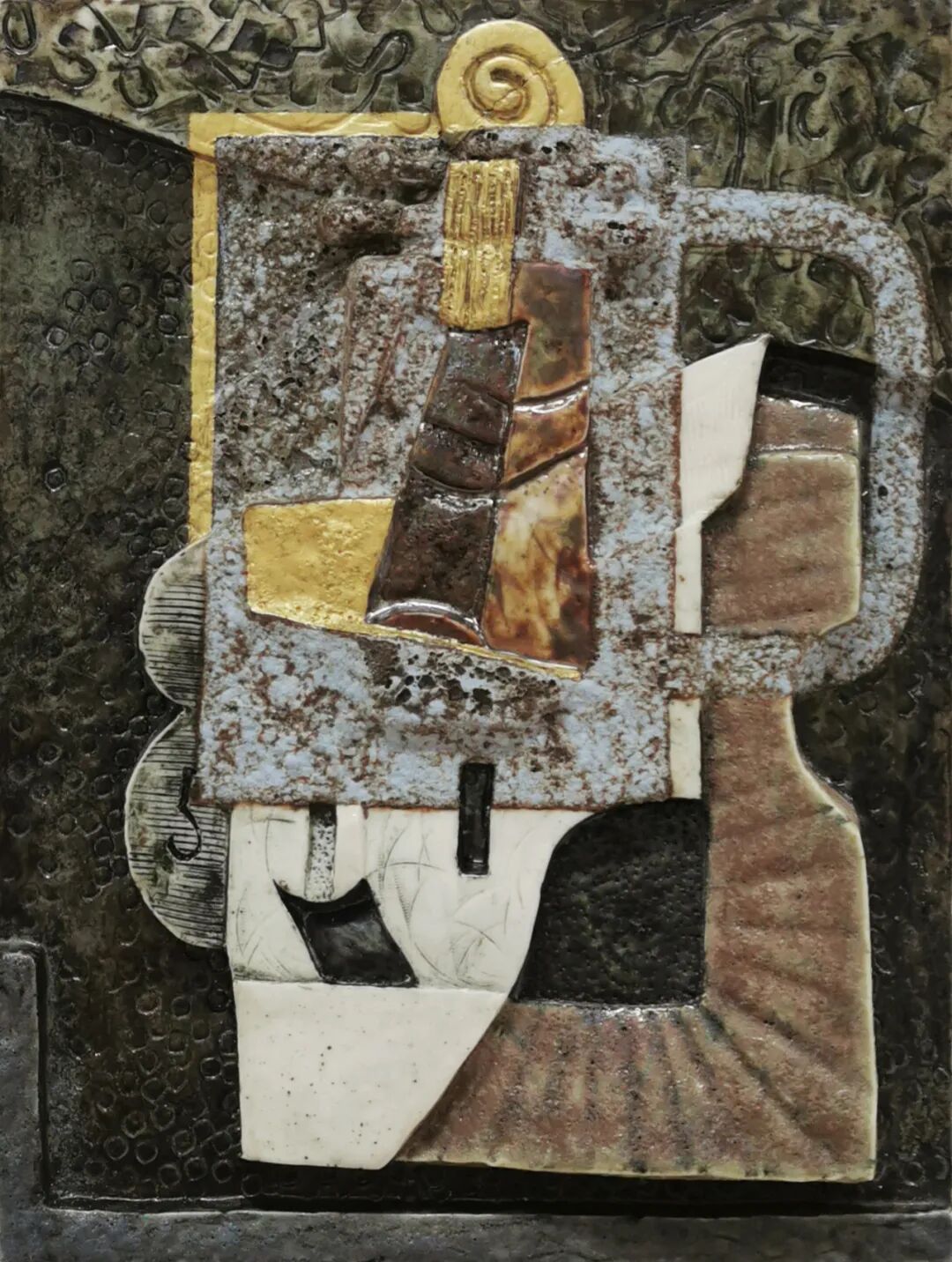 瓷土、釉、合成樹脂、金箔漆 50×40×5cm 2019年