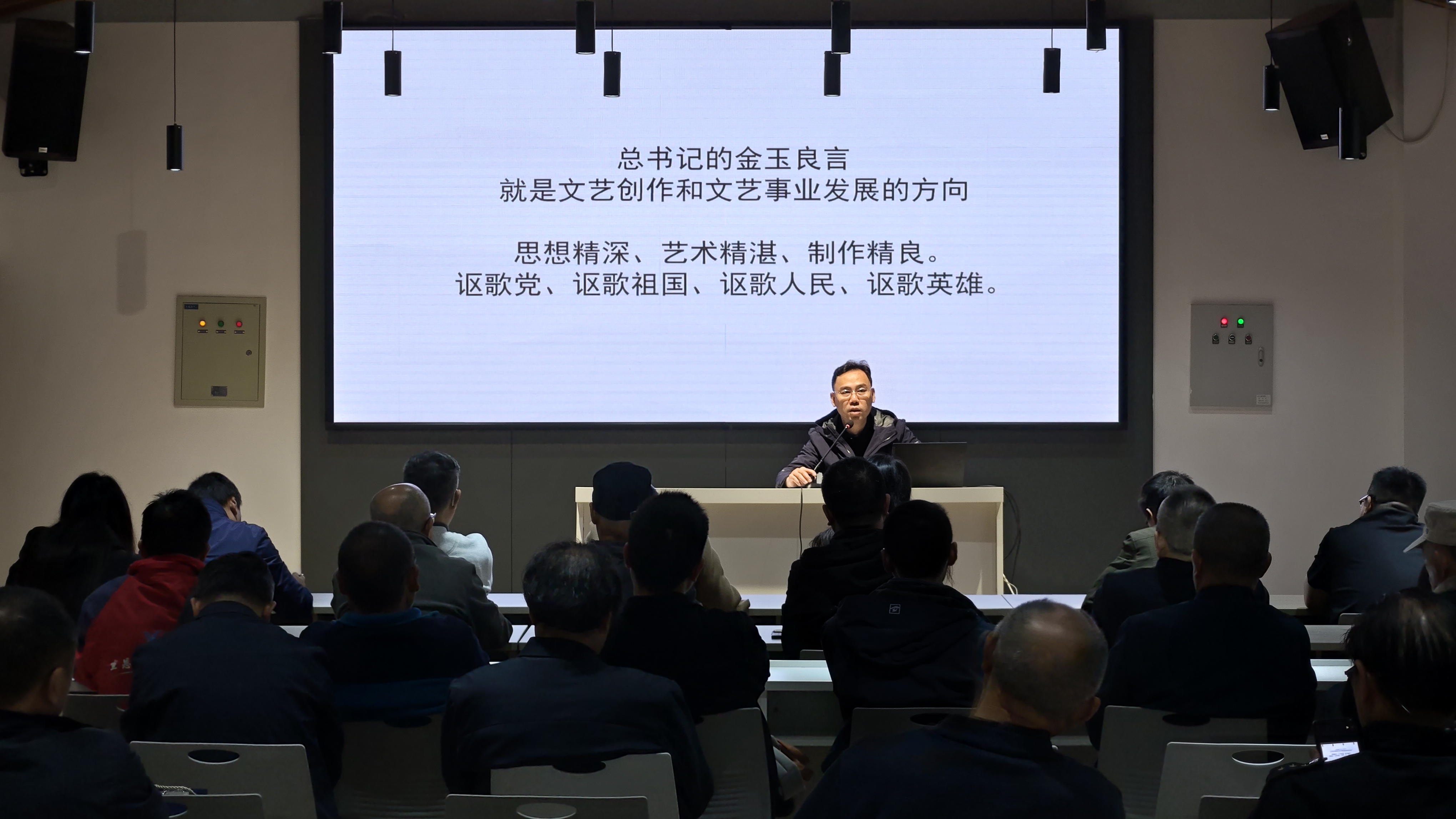 活動(dòng)伊始,省文聯(lián)文學(xué)藝術(shù)院負(fù)責(zé)人虞旻子圍繞“崇德尚藝——做有信仰、有情懷、有擔(dān)當(dāng)?shù)男聲r(shí)代文藝工作者”主題展開(kāi)宣講。他結(jié)合自身經(jīng)驗(yàn)與行業(yè)案例,深入淺出地闡釋新時(shí)代文藝工作者的使命與擔(dān)當(dāng),引導(dǎo)在場(chǎng)人員堅(jiān)定文化自信,扎根基層創(chuàng)作。