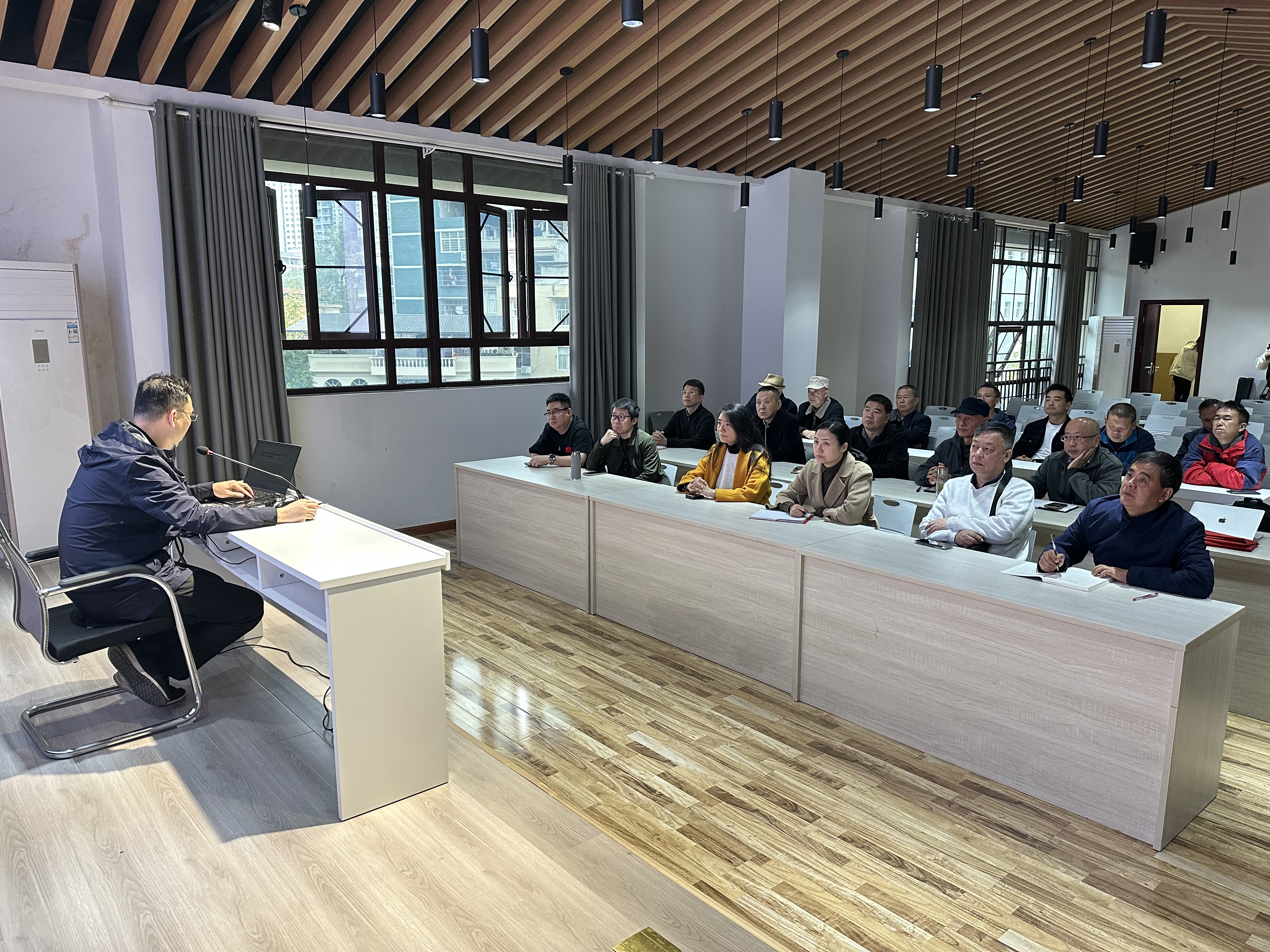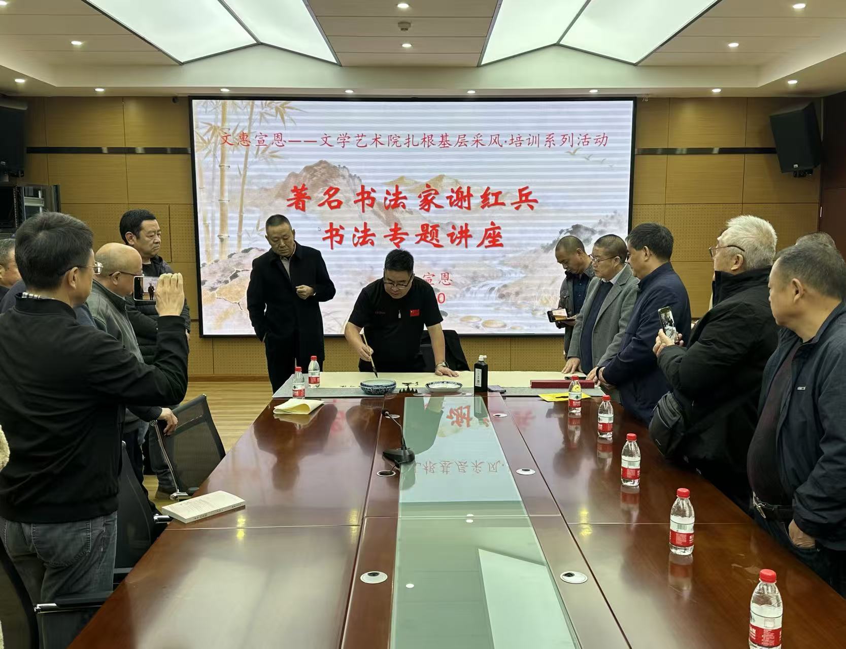 宣講結(jié)束后,三場(chǎng)專業(yè)文藝講座同步拉開(kāi)帷幕。文學(xué)藝術(shù)院負(fù)責(zé)人虞旻子、省國(guó)畫院藝委會(huì)成員葉利平、省書法院書法家謝紅兵分別為宣恩縣文藝家、文藝愛(ài)好者們帶來(lái)攝影、國(guó)畫、書法講座。聽(tīng)眾們認(rèn)真記錄、踴躍提問(wèn),互動(dòng)頻繁,現(xiàn)場(chǎng)氣氛熱烈活躍,大家紛紛表示 “干貨滿滿,收獲頗豐”。