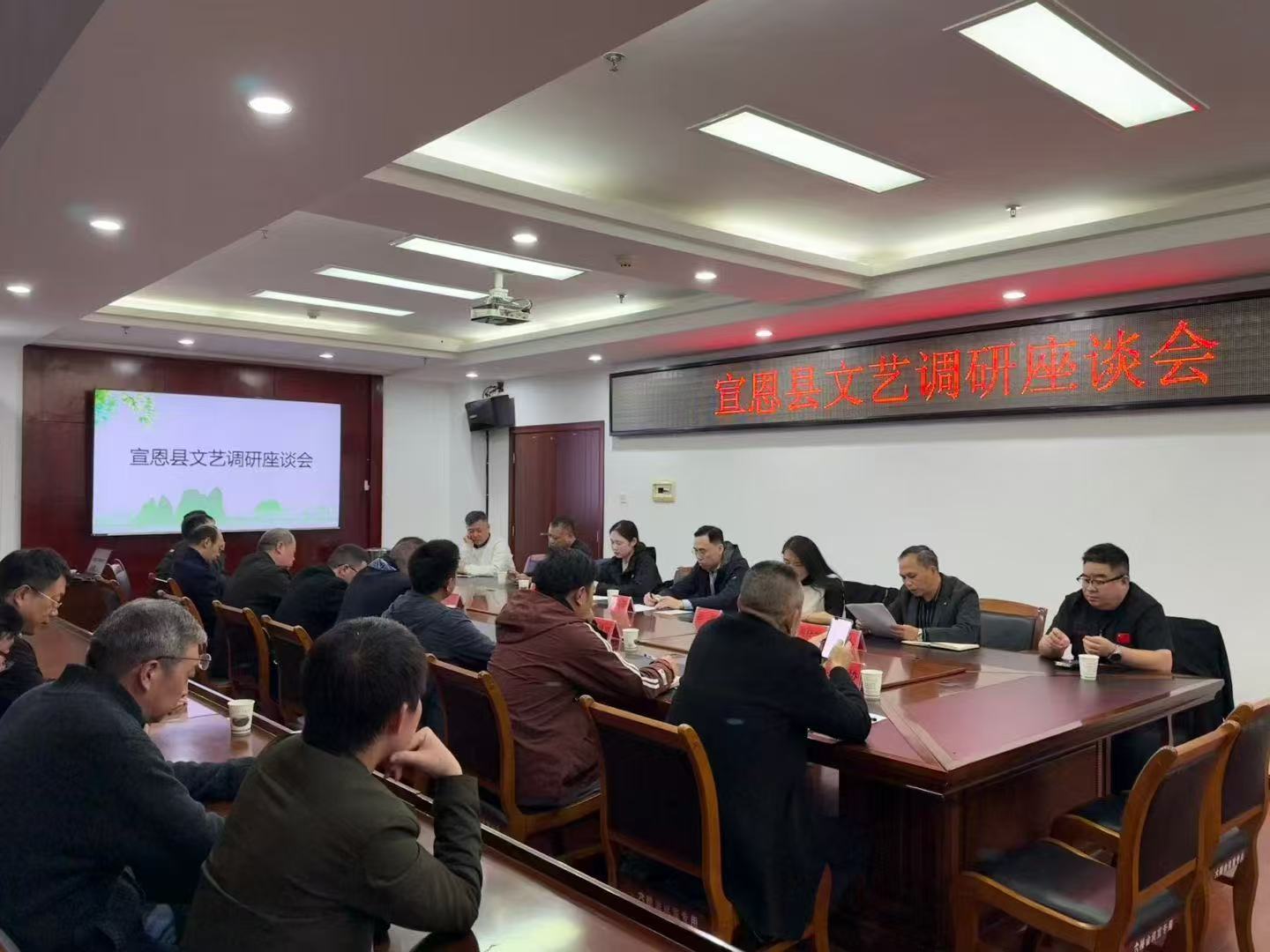 調(diào)研期間,采風(fēng)團(tuán)聯(lián)合宣恩縣文聯(lián)組織召開(kāi)文藝調(diào)研座談會(huì)。會(huì)議圍繞人才培養(yǎng)、項(xiàng)目申報(bào)、主題活動(dòng)策劃三大核心議題展開(kāi),旨在深入了解基層文藝工作實(shí)際情況,打通上下溝通聯(lián)動(dòng)渠道。座談中,采風(fēng)團(tuán)一方面認(rèn)真聽(tīng)取基層文藝工作者的意見(jiàn)與訴求,另一方面結(jié)合實(shí)際需求,為宣恩縣文藝工作提供針對(duì)性的建設(shè)性指導(dǎo)。湖北省文聯(lián)文學(xué)藝術(shù)院負(fù)責(zé)人虞旻子、副院長(zhǎng)張靜等出席會(huì)議,宣恩縣文聯(lián)主席周仕華以及各協(xié)會(huì)負(fù)責(zé)人就相關(guān)工作情況進(jìn)行匯報(bào)交流。