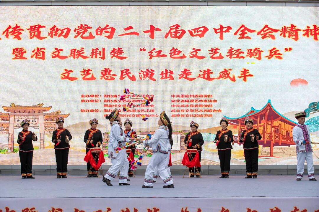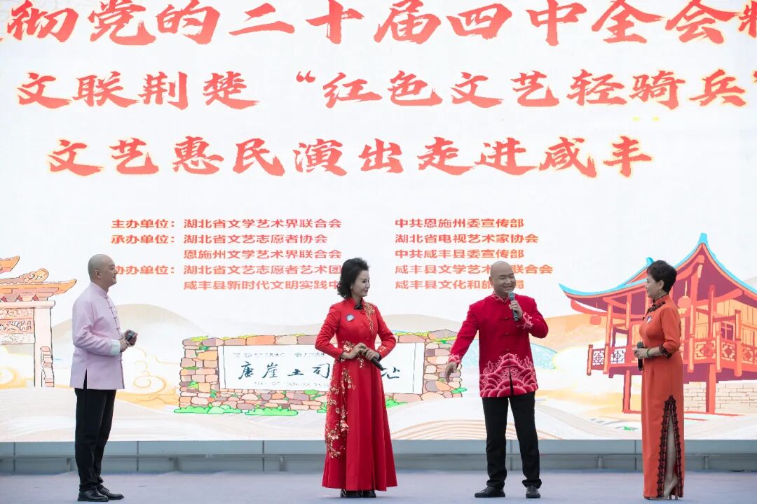 11月6日下午,采風(fēng)團(tuán)組成荊楚“紅色文藝輕騎兵”小分隊(duì)走進(jìn)咸豐縣曲江鎮(zhèn)灣田村開展文藝惠民演出。本場演出內(nèi)容創(chuàng)新、形式新穎,突出了“四最”的文藝志愿服務(wù)新形式。