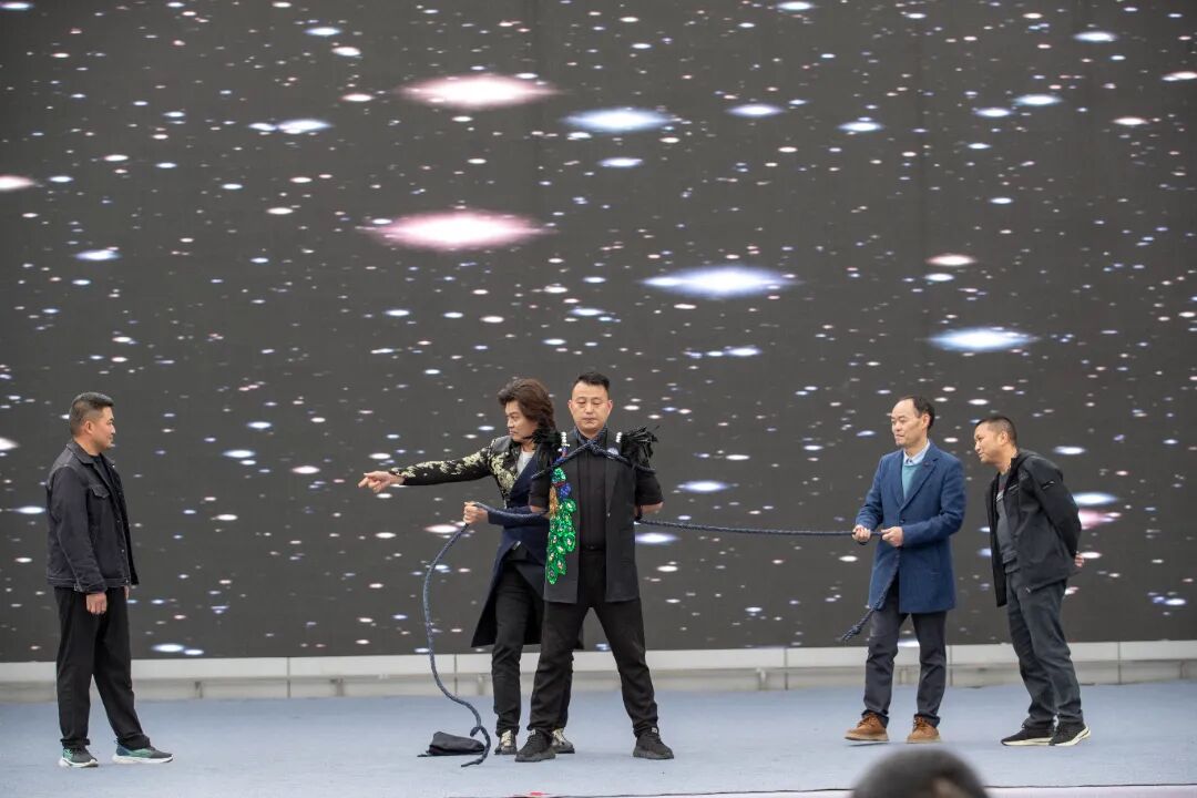 “最響”觀眾掌聲。本場演出互動(dòng)性強(qiáng),由書畫大家采風(fēng)創(chuàng)作的書畫作品現(xiàn)場贈(zèng)送給當(dāng)?shù)卣?,魔術(shù)表演中多位村民上臺(tái)親身感受了魔術(shù)的魅力,猜字謎游戲送給現(xiàn)場觀眾“豐厚”的禮物,現(xiàn)場充滿觀眾的笑聲與掌聲;演出雖然跨界組合多,但藝術(shù)家們臺(tái)下的勤練與多年的舞臺(tái)經(jīng)驗(yàn)呈現(xiàn)給觀眾良好的現(xiàn)場效果,每一個(gè)節(jié)目都是掌聲雷動(dòng)。