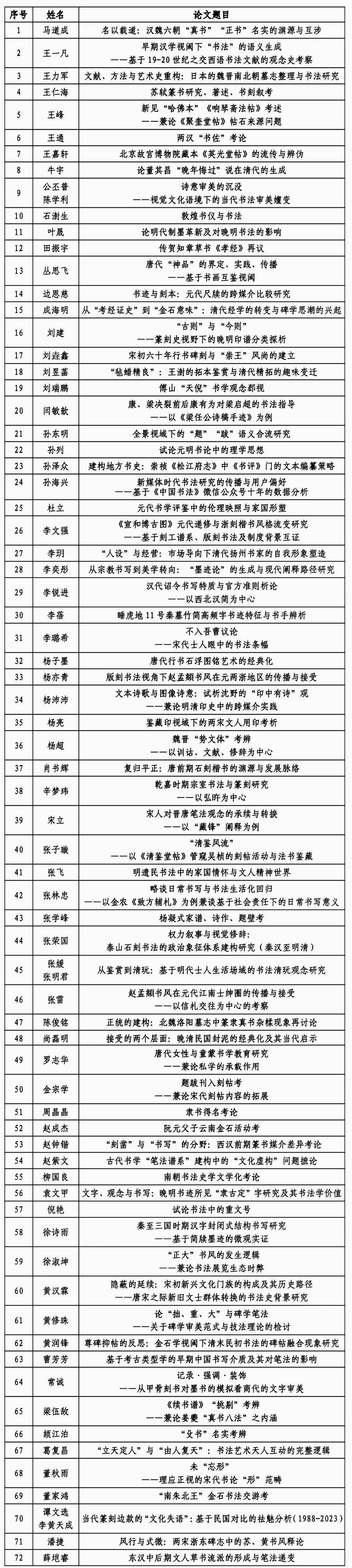 本屆書學討論會共收到稿件1696篇,經過初評、復評、查重審核、終評、答辯考核,共評出入選論文72篇。
