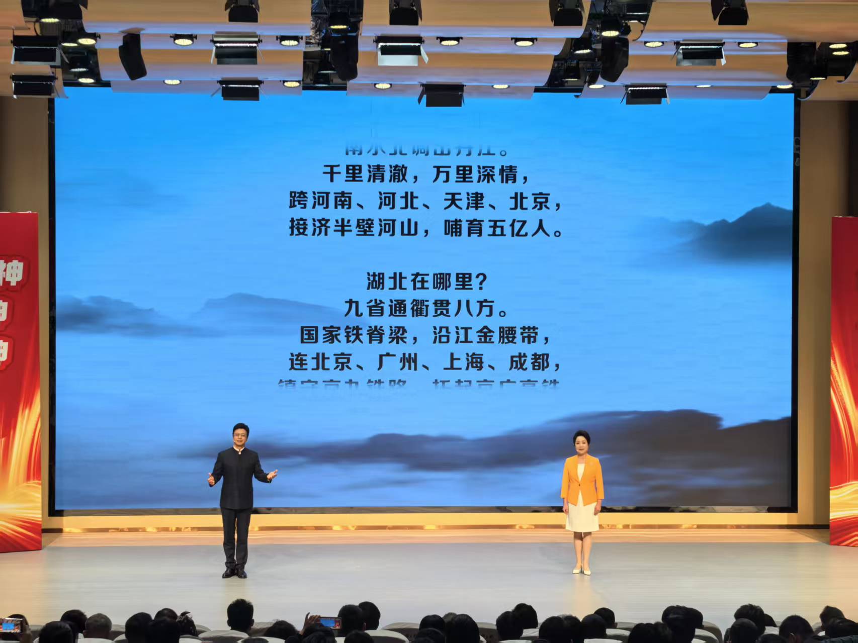 音樂思政課在《東方紅》的莊嚴(yán)歌聲中拉開序幕。電吹管獨(dú)奏《八月桂花遍地開》帶領(lǐng)觀眾重溫大別山革命的烽火歲月;《為了誰》的深情演唱再現(xiàn)1998年抗洪搶險的感人場景,歌曲《民不能忘》演繹了襄陽世代傳承的為民情懷;原創(chuàng)歌曲《你的眼睛像那花蕾》與詩朗誦《我是湖北人》,生動展現(xiàn)了抗疫期間的動人故事與精神力量。