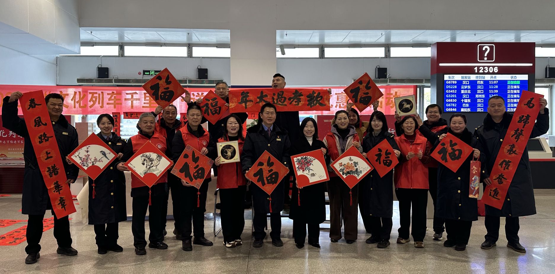 春潮涌動處,年味漸濃時。2月2日上午,市文聯(lián)在孝感東站組織開展“文化列車千里行?送萬福進萬家”活動,為南來北往的旅客送上新春祝福,讓春運旅途洋溢濃厚文化年味。