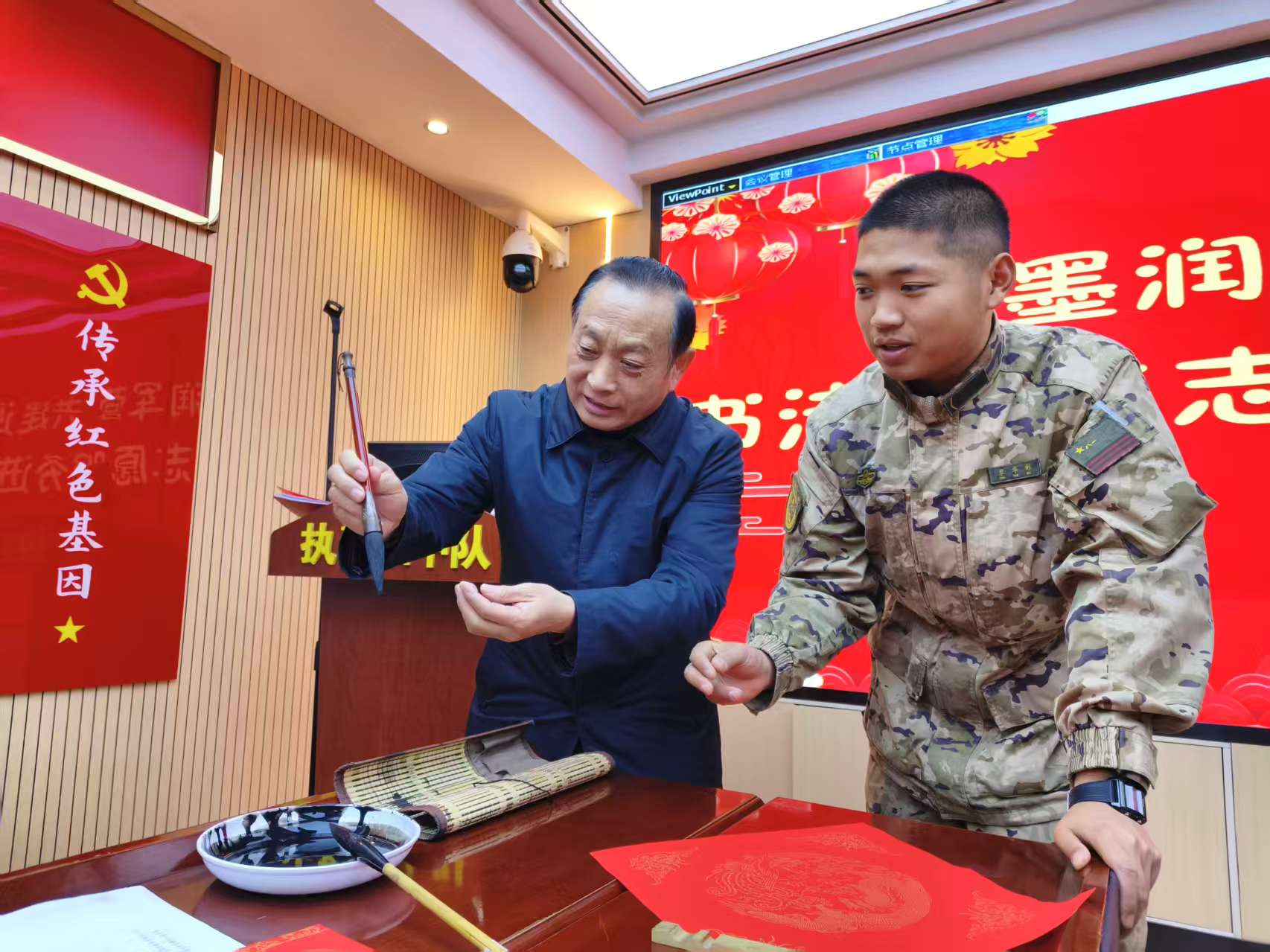 1月31日上午,市文聯(lián)組織市書(shū)法家、市美術(shù)家文藝志愿者在武警襄陽(yáng)支隊(duì)某中隊(duì)開(kāi)展書(shū)法進(jìn)軍營(yíng)志愿服務(wù)活動(dòng)