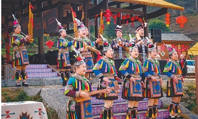 高腔清音慷慨明囀,花艷琴韻熱耳驚目。此刻,山鳴谷應(yīng),同聲相應(yīng)。這是在湖北宣恩縣傳統(tǒng)古村落彭家寨舉辦的湘鄂渝黔四省份原聲民歌展演現(xiàn)場。