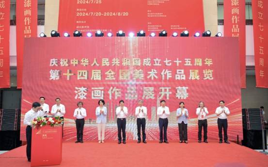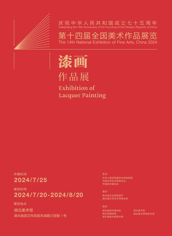 7月25日,由中華人民共和國(guó)文化和旅游部、中國(guó)文學(xué)藝術(shù)界聯(lián)合會(huì)、中國(guó)美術(shù)家協(xié)會(huì)主辦,湖北省文化和旅游廳、湖北省文學(xué)藝術(shù)界聯(lián)合會(huì)承辦的“慶祝中華人民共和國(guó)成立七十五周年——第十四屆全國(guó)美術(shù)作品展覽漆畫作品展”在湖北美術(shù)館開(kāi)幕。本屆漆畫展區(qū)收到來(lái)自全國(guó)各地投稿的漆畫作品共計(jì)1963件(組),經(jīng)過(guò)評(píng)審委員會(huì)初評(píng)、復(fù)評(píng),共選出198件(組)入選作品,展覽持續(xù)至8月20日,期間,同步舉行“柒月遇見(jiàn)漆月”主題“2024全國(guó)漆畫作品邀請(qǐng)展”“2024全國(guó)青年漆畫學(xué)術(shù)提名展”“曾侯乙展”等展覽及活動(dòng)。此次入選的漆畫作品主題深刻,技法多元,彰顯了當(dāng)代漆畫在敘事豐富性、傳統(tǒng)技法融合性上的諸多特征:一是反映社會(huì)變遷,展現(xiàn)新時(shí)代新風(fēng)貌;二是推動(dòng)了傳統(tǒng)漆畫工藝與當(dāng)代繪畫語(yǔ)言融合;三是涌現(xiàn)了一批優(yōu)秀青年漆畫作者,漆畫創(chuàng)作隊(duì)伍日臻成熟。